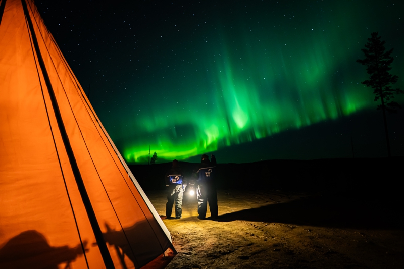 Are you dreaming of a breathtaking Northern Lights experience? The first thing you’ll need is the perfect setting to immerse yourself in nature’s most spectacular light show. Breathe in, get a snack with a warm drink and enjoy the natural light show in the dark, arctic sky far away from the city lights! Put all of these together and you’ve increased your chances of seeing the Northern Lights in all their beauty! The way to our private location will take 40 minutes starting from our Safari Center where you are provided with warm outfits (if needed).