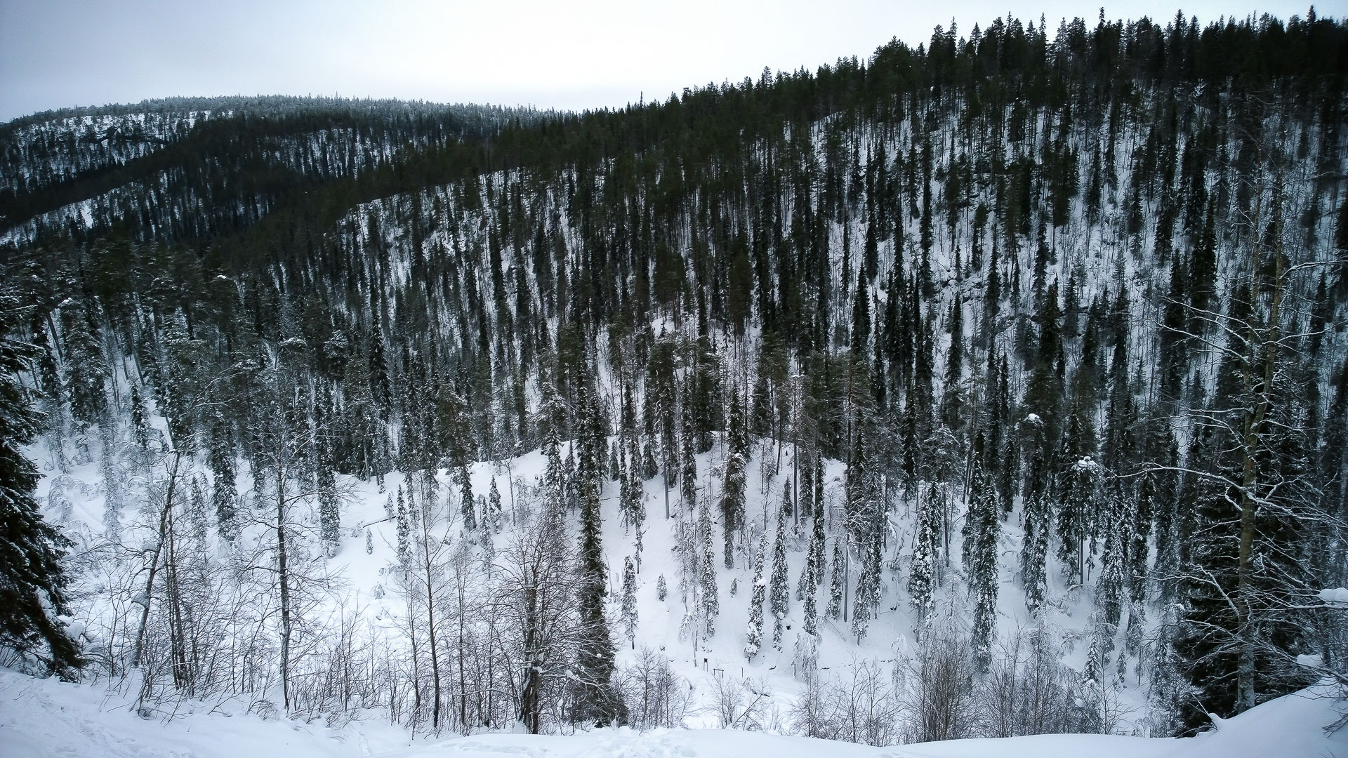 Korouoma is a 30 kilometers long geological fracture valley in Posio. It is a part of a fracture zone in the bedrock, which is hundreds of millions of years old. At the center of Korouoma the fracture valley forms a gorge with high cliff faces. Small streams which cascade down the cliff faces in the summer, freeze into beautiful frozen waterfalls during winter, making Korouoma the number one ice climbing destination in Finland. Upon arrival Your guide will lead the way! This 1,5 km hike is geared towards the active traveler and contains moderate elevation gain (220m). This portion of the trip takes about 40 minutes to walk. Now you can get your breath back while enjoying a snack and hot drinks by the open fire and making unique photos of wild Lappish nature. Quite frequently we see reindeer, moose, red fox along the way.
